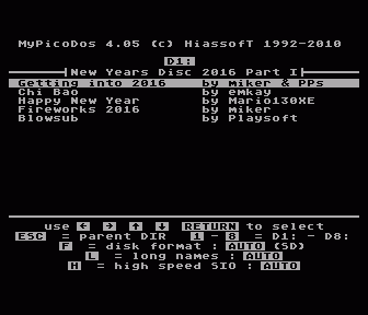 New Years Disc 2016 =================== Hello 2016! Hope you all got well into the new year and now are prepared for our little greetings: Disc 1 - multidisc (Enhanced/Medium Density) -------------------------------------------- Getting into 2016 (3 screener) by miker & PPs Chi Bao (sound) by emkay Happy New Year (picture) by Mario130XE Fireworks 2016 (animation) by miker Blowsub (game) by Playsoft Note: Getting into 2015 contains a TIP, that is not displayed 100% correct in the demo. You'll find the original Y2016.TIP file on disc 5 for full pleasure. The music should play correct on both PAL/NTSC - the color palletes are PAL optimised. Disc 2 - multidisc (Enhanced/Medium Density) ----------------------------------- The Gift (soundmenu) by Agenda, MEC, Lamers & 505 Made with ATARI 800 (PAL) (intro) by philsan Bam 2016 (intro) by Creature XL Filtermod (sound) by emkay Rocky Horror Show (PAL) (intro) by philsan NYD 2016 Nessie (game) by Sikor Note: philsan has rendered both pictures with PAL palette (on this disc) and with NTSC palette (on disc 4 and 5) for full pleasure regardless your tv system. Disc 3 - Codeman (Enhanced/Medium Density) -------------------------------------------- Codeman (AUTORUN.BAS) (game) by Rockford It's a Turbo Basic MindMaster type game. Disc 4 - multidisc (Enhanced/Medium Density) -------------------------------------- Happy New Year (picture) by Mario130XE MD201601 (intro) by T.M.R. Darklight (sound) by xxl Mr. Bean (picture) by snicklin Happy New Year Baby (animation) by miker Made with ATARI 800 (NTSC) (intro) by philsan Disc 5 - multidisc (Enhanced/Medium Density) -------------------------------------- Rocky Horror Show (NTSC) (intro) by philsan R.I.P. Lemmy (picture) by Stephen Happy New Year (picture) by snicklin Y2016.TIP (picture) by miker Note: For viewing TIP on ATARI simply use tipview from eru. It's included in the TipTools. You can find them here: https://github.com/epi/TipTools ------------------------------------------------------------------------------- Wow, 10 times NYD and every time some new people and some 'residents' doing stuff for our ATARI. It's a pleasure to have that amount of creativity no matter if one is a coder, a painter, a songwriter, a profi, a beginner or what ever. Every entry brings a big smile into my face no matter on what level it is. The fun being creative is/was my main intention when I first asked for some snippets of your work and always, when I ask you again :) We have seen a lot of cool things over the passed years. Hope to get even more in the future. Now have fun with this year's edition! Happy New Year 2016! PPs